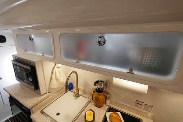 Kitchen Galley with Frosted Higher Cupboards