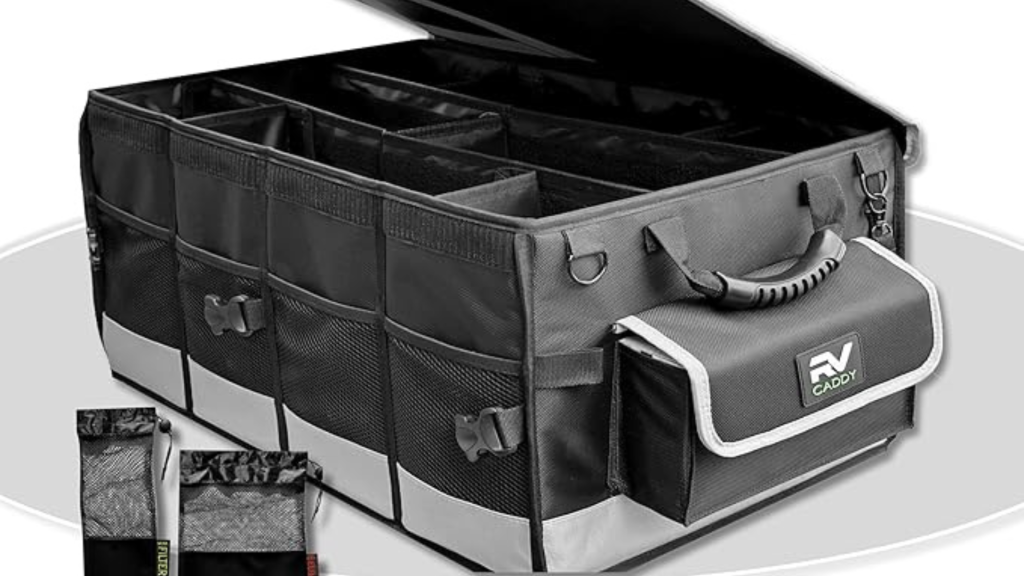 The RV caddy is a collapsible storage container with storage compartments for gear, tools, and different equipment. It’s one of many best and finest options to know precisely the place your stuff is when you might want to use it.
